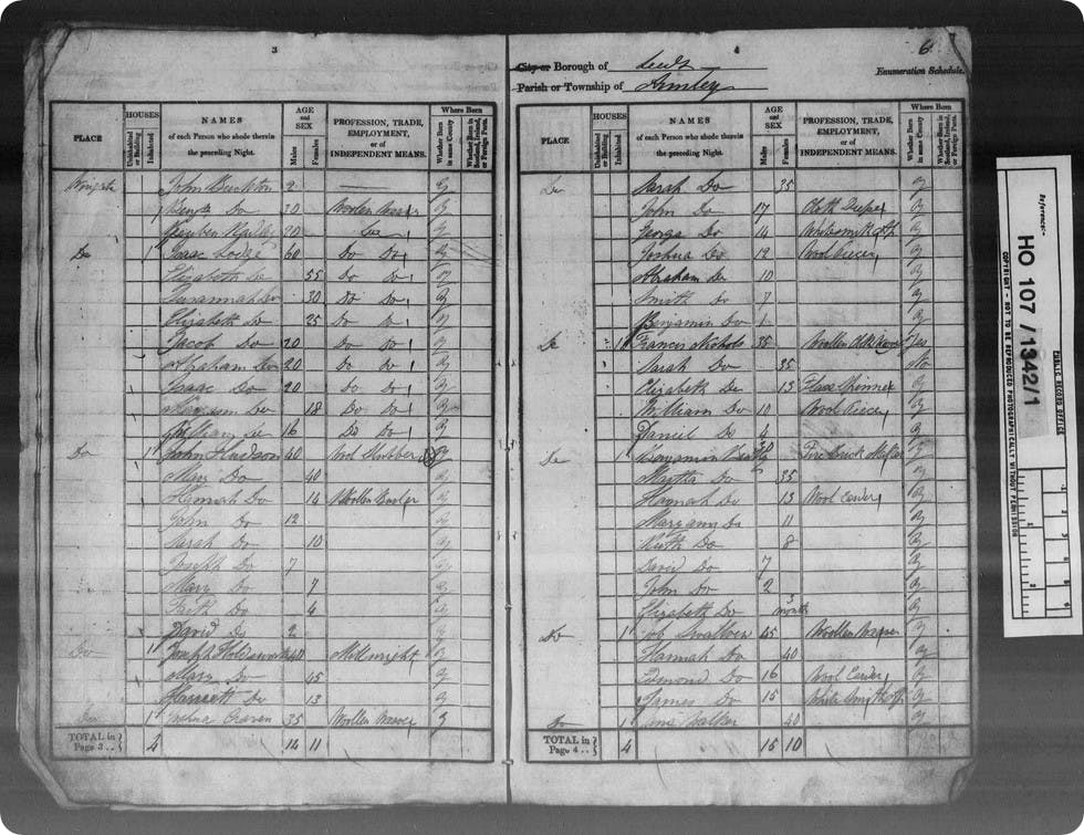 Joshua one was born in around 1803 at Pudsey, an industrial town midway between Leeds and Bradford, while his wife Sarah, also 58, was born at Wortley, Leeds.