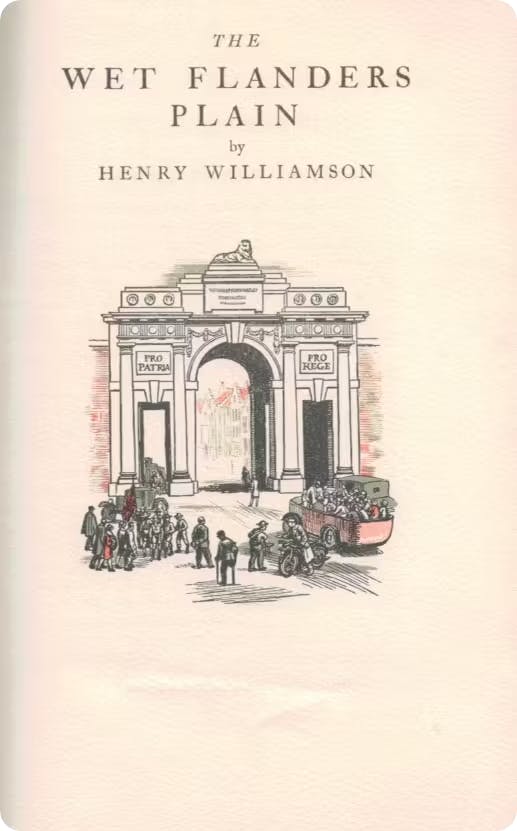 Henry Williamson (Chronicles of Ancient Sunlight, Tarka The Otter, et. al.) was also a junior officer in Flanders and served with the 5th London Regiment, Machine Gun Corps and Bedfordshire Regiment whilst in the British Army. I treasure my 1929 first edition of this book which carries an inscription from ‘Percy’ to ‘Herbert JH’, “In memory of our visit to Battlefields 1938, 20 years after our first visit."