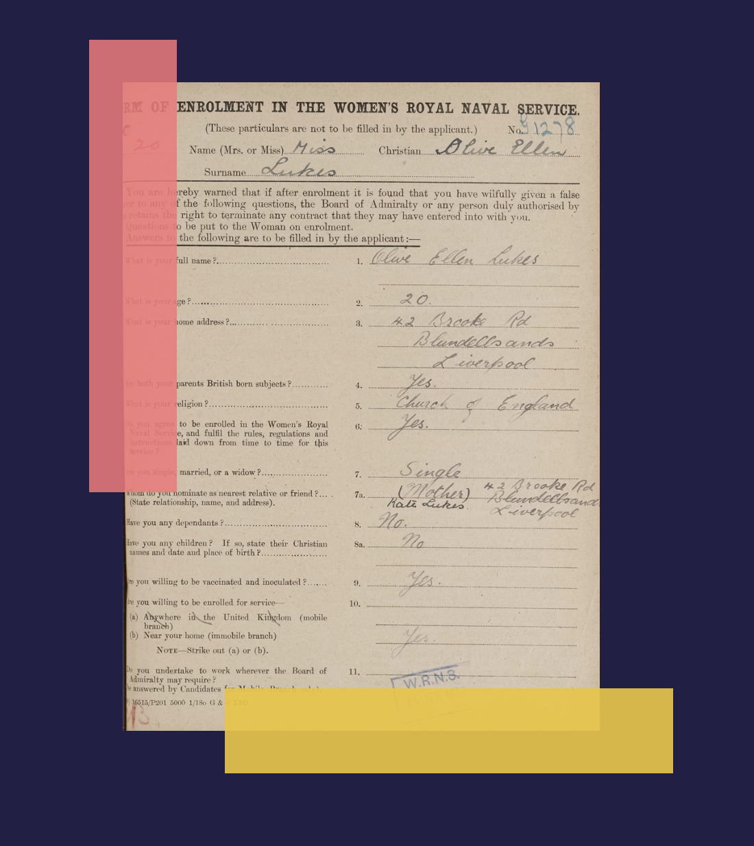 This collection of British Women's Royal Naval Service Enrolment records documents the service of women who joined the Women’s Royal Naval Service during the final years of the First World War. Established in 1917, the WRNS enabled women to take on shore-based naval roles. Delve deeper to discover whether your ancestor may have worked as a driver, a cook, in communications or releasing men for service at sea.